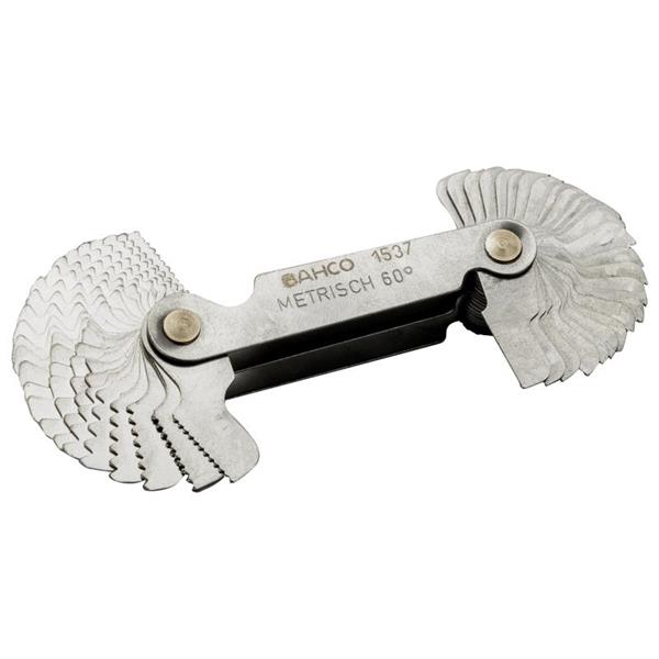 The Bahco 1537 Metric Imperial Screw Gauge has 52 blades: Metric 60° and Whitworth 55° screw pitch gauge.