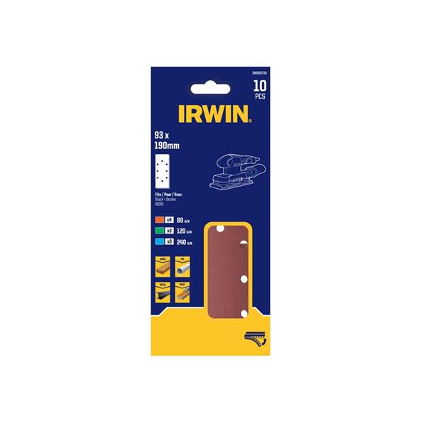 IRWIN® 1/3 Punched Quick Fit Sanding Sheets with Velcro attachment, reduced space between the sanding sheet and the machine allows for higher removal rate. Perforation allows for more efficent dust extraction.