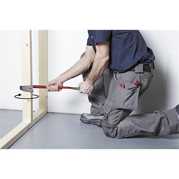 The Hultafors 209 SB Adjustable Wrecking Bar is manufactured in high quality steel with ergonomic rubber-clad handle. It's articulated claw is adjustable to nine different positions. With wide, ground contact surfaces and thin ends make it easy to use and reduce the risk of leaving marks. The claw is optimized for pulling out nails. The curved section at the chisel makes space for the hand and minimizes the risk of crushing damage.