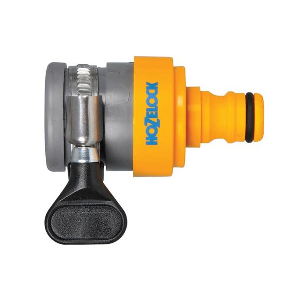 The Hozelock Round Tap Connector designed for round and oval spout taps. The fitting is sealed to the tap by tightening the stainless steel clip.