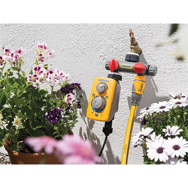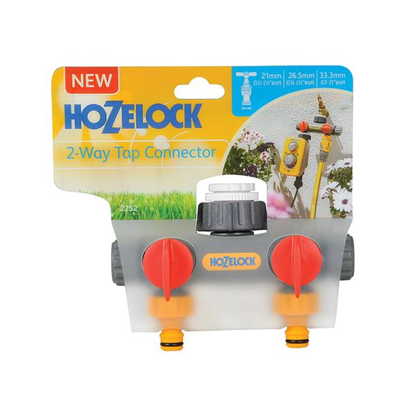 The Hozelock 2-Way Tap Connector allows two watering devices or hose pipes to be connected directly to one outside tap. Fitting most garden taps and supplied with 21mm (1/2in BSP), 26.5mm (3/4in BSP) or 33.3mm (1in BSP) adaptors.
