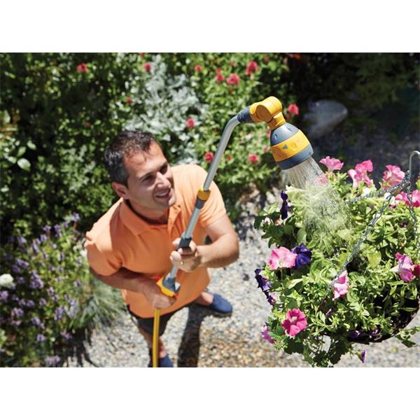 The handle is 90cm in length and will extend up to 140cms when needed. The Plus 140 has a 180° adjustable spray head for more convenient watering at different heights.