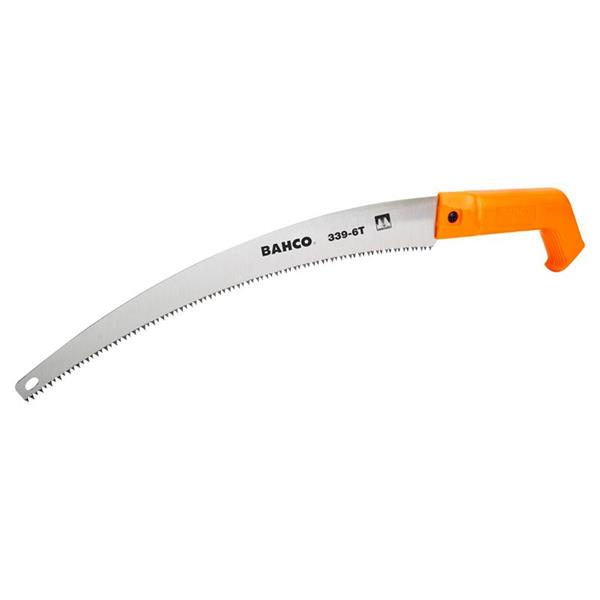 Bahco 339-6T Hand / Pole Pruning Saw for either hand-held use or on extension poles (25mm diameter). Special hardpoint fleam toothing is very efficient on pull stroke sawing. Ideal for orchard, forestry and landscape pruning work. Comfortable to use plastic handle for conventional hand sawing.