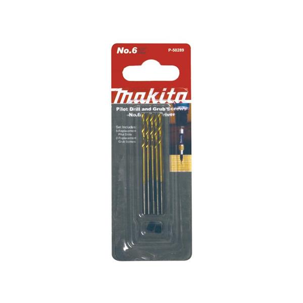 This Makita set includes 5 pilot drills and 2 grub screws.
