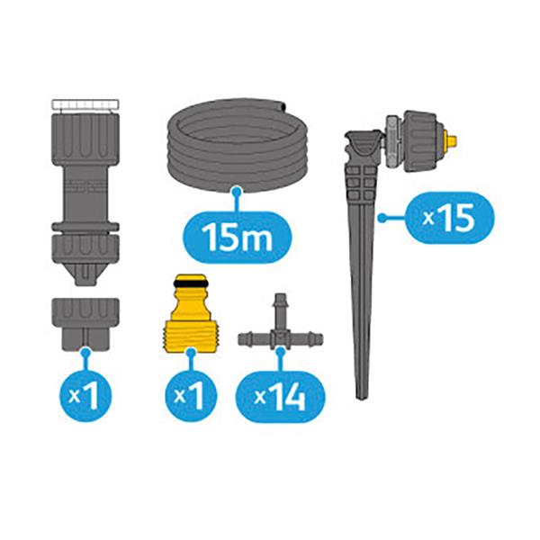 The Hozelock Universal Kit is a complete watering kit for up to 15 containers. The Easy Drip Micro Kit is quick and simple to install, providing a discreet solution to keeping your containers well-watered.