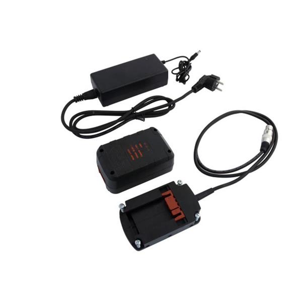 Composed of a Li-ion battery (36V - 1.5Ah) and its charger + a battery rack to connect to the machine.