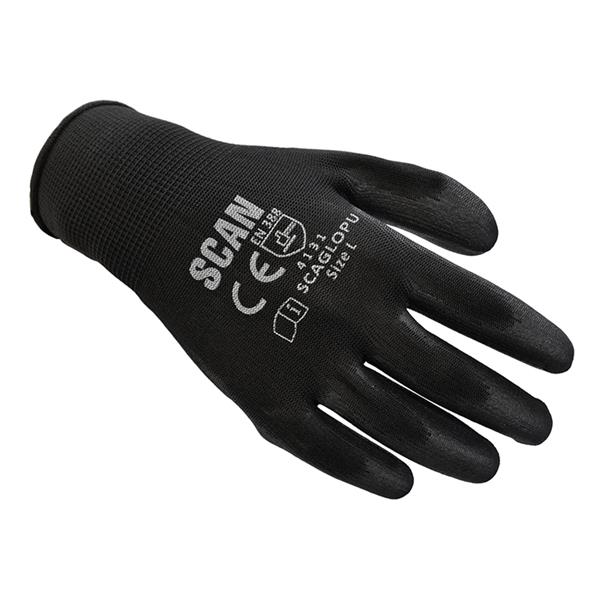 Scan Black Pu Coated Gloves - L (Size 9) (12 Pairs)