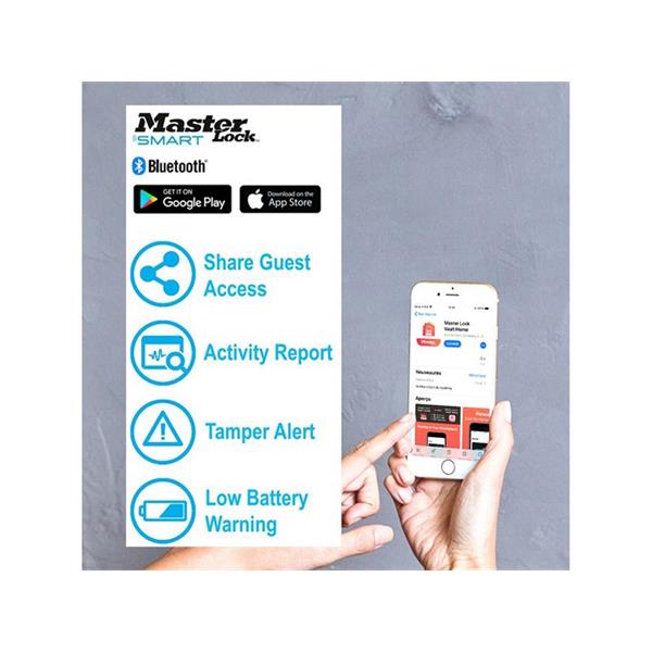 Master Lock Bluetooth® Outdoor Padlock features a 56mm wide metal body for durability. Its boron alloy shackle offers maximum resistance to cutting and sawing. Use your smart phone to open and manage your lock via the Master Lock Vault Enterprise app (apple and android).