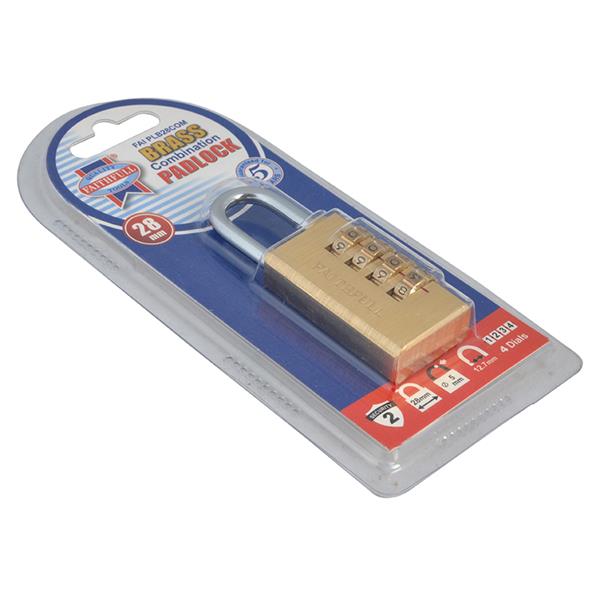 Faithfull Brass Combination Padlock 28Mm