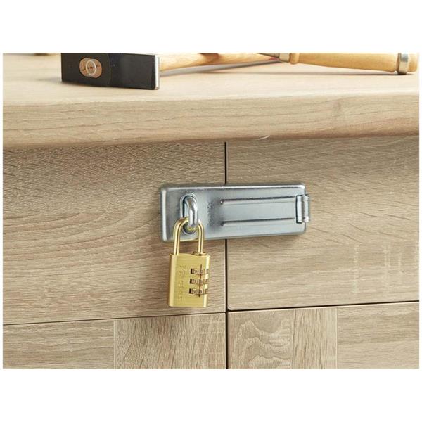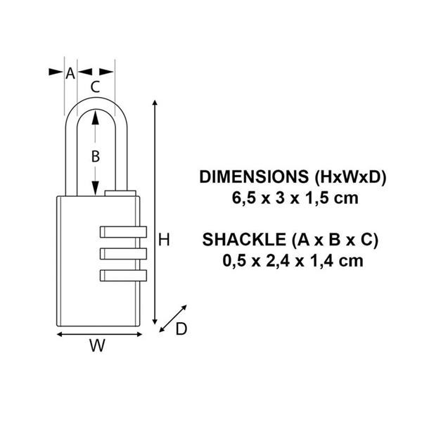 30mm aluminium padlock with brass finish - 23mm chrome plated steel shackle, 5mm diameter - 3-digit resettable combination