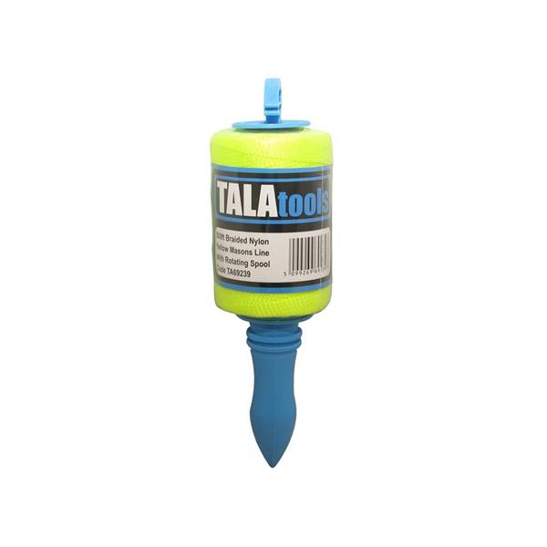 This TALAtools Yellow Builder's Line comes on a spool winder. The line will not mildew and its strength isn't affected by moisture or dryness. Will not unravel if struck by a trowel.