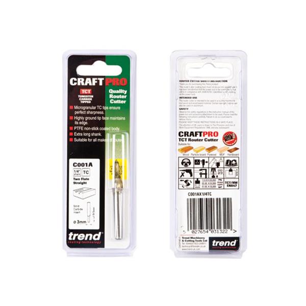 The Trend C001A x 1/4 TCT Two Flute Cutter has the following specification: