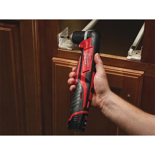 The Milwaukee C12 RAD Compact Cordless Right Angle Drill has a compact and lightweight design. Ideal for work in narrow and confined spaces, such as between joists. Also with a bright LED light to illuminate the working area.