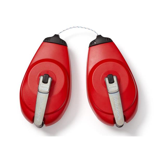 The Hultafors Chalk Line Duo has an innovative design, two housings connected by one line. This makes work safer and more efficient in hard-to-reach places, such as roofs or sky lifts. You don't have to walk or throw back the end hook like on a traditional chalk line reel, instead you can crank the line back and forth between the houses for easy pigment replenishment.