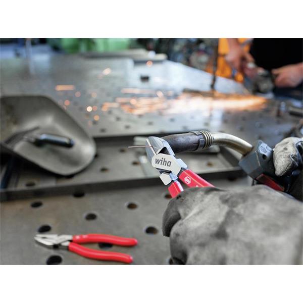 1 x Pair of Needle Nose Piers. Made from high-quality C 70 tool steel, tempered. With an extra long cutting edge for flat and round cables. Gripping surfaces are partially serrated. Cutting edges additionally induction hardened to approx. 64 HRC. Fitted with Classic Wiha grips for increased comfort. Conforms to ISO 5745.