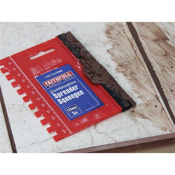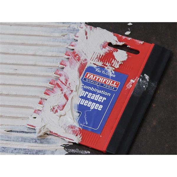 This Faithfull Combination Spreader has a convenient dual purpose design. The notched edge allows fast adhesive application and the squeegee edge enables rapid grouting.