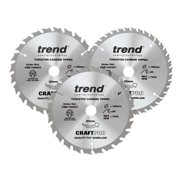 Trend Craftpro Cordless Saw Blade 165 X 20Mm X 24T/40T (Pack 3)