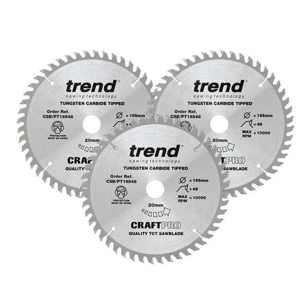 1 x Pack of 3 Trend CraftPro CSB/PT16548 Panel Trim Saw Blades 165 x 20mm x 48T