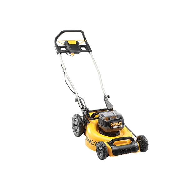 The DEWALT DCMW564 Cordless XR Lawnmower has a brushless motor for less maintenance, more power and lower noise levels. The 51cm metal deck provides additional durability and a 48cm cutting capacity to cover a wide area. The handle is ergonomic in design and ensures easy and comfortable steering. Also fitted with a bottom roller allowing easy and free-flowing movement across the ground.There is a power actuation button for easy 'turn on/off' function and a secondary safety switch for added safety. Fitted with a 55L heavy-duty mesh fabric grass collection bag.Specification:Cutting Width: 48cm