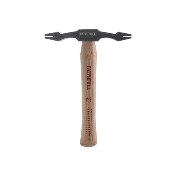 Faithfull Double Scutch Hammer with a seasoned hickory handle. Made with FSC® 100% Certified Wood from well-managed forests. It has comb slots at both ends to fit replaceable one inch scutch combs or chisel bits (droves). These specialist hammers are the most commonly used tools for dressing and cleaning bricks.