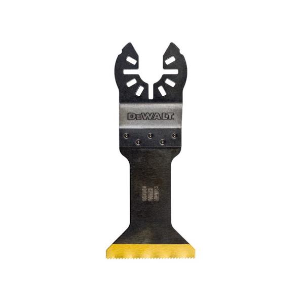 DEWALT Titanium Bi-Metal Multi-Tool Blade designed for both wood and metal cutting applications. Cuts metal, wood, wood with nails, plastics and plasterboard. Durable enough to tackle tough jobs. Its bi-metal construction combines a HCS body with HSS teeth.