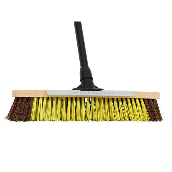 The BULLDOZER Dual Fill Broom has a wooden head with stiff dual PET and natural bassine bristles. The stiff bristles have been designed for sweeping up heavy debris in both wet and dry conditions. Whilst the natural bassine is resilient to both water and cleaning chemicals. Its metal handle is fitted with a cushioned neoprene grip provides additional comfort whilst sweeping. A double lock bracket provides additional stability when in use.