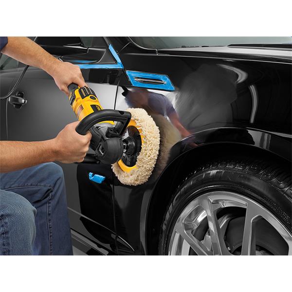 The DEWALT DWP849X Variable Speed Polisher with rubber overmoulded gear casing and variable speed trigger allowing the operator to control the speed of the unit by adjusting the force applied to the switch. Replaceable wool ingestion shields prevent wool from being sucked into the unit and blocking the tool. An additional safety feature is a no volt release switch which will prevent the unit from starting when plugged in, even if the switch is in the on position.