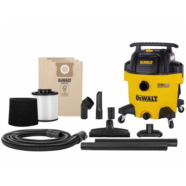 The DEWALT DXV34P-QTA Wet & Dry Vacuum with Stealthsonic quiet technology. Delivers less than 65 dba of noise to allow for conversations and no need for hearing protection. Its powerful motor generates 18kPa of suction power. Ideal for almost any clean-up job, designed to handle both wet and dry materials with ease. Its large on/off switch has a water-resistant design for ease of use. The quick-connect locking hose system provides easy but secure connection.