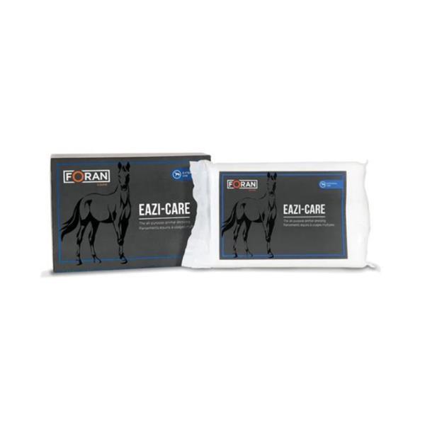 The Foran Equine Eazi-Care Animal Dressing is a multi-purpose, individually wrapped cotton pad infused with tragacanth and boric acid, ideal for drawing and cleaning wounds. Whether used wet or dry, hot or cold, it adapts to your horse’s needs for optimum healing support.