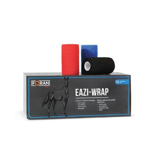 The Foran Equine EaziWrap Bandage is an economical, self-adhesive bandage that provides secure support and protection for wounds and injuries. Designed with a light stretch, it contours effortlessly around any part of the horse's leg, while being easy to tear to the required length without the need for scissors.