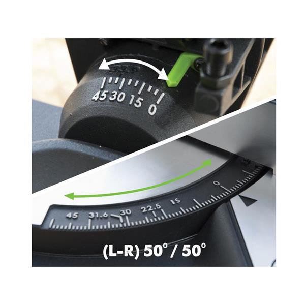 Max. Bevel Left: 45°, Max. Mitre Left/Right: 50°/50°.