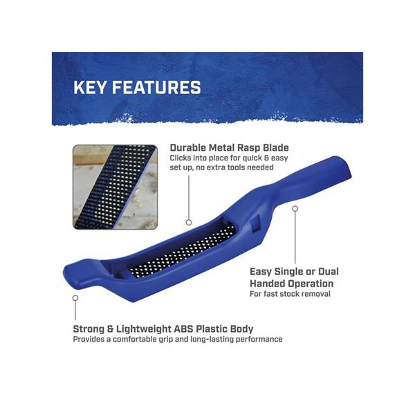 The Faithfull Hand Rasp File is suitable for removing material from all types of wood, aluminium, plastics, fibreglass and laminates. It can also be used for plaster and filler removal. The lightweight and strong ABS plastic body design allows this rasp to be used with a single or dual handed operation for fast stock removal. The durable metal rasp blade clicks into place, making its replacement tool-free and fast.
