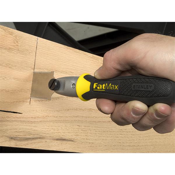 This FatMax® pullsaw has a double sided blade for convenient cutting from the left or the right.
