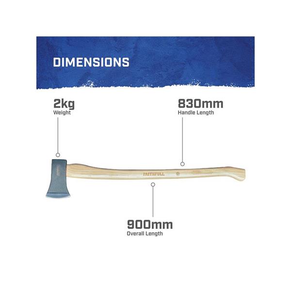 Faithfull Felling Axe Fsc Hickory Shaft 2Kg (4.1/2Lb)