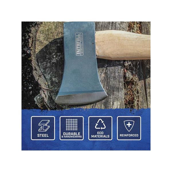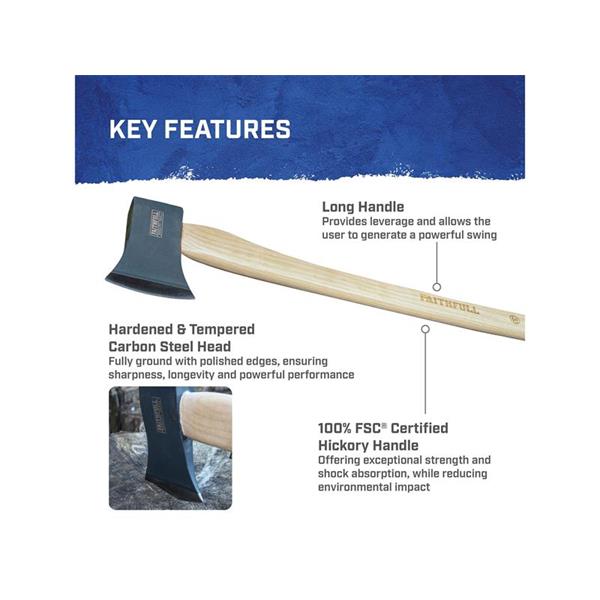 This Faithfull Felling Axe is manufactured from carefully hardened and tempered quality carbon steel, the head is fully ground with a polished cutting edge which is protected by a blade guard. Fitted with a traditional hickory handle which is known for its strength and ability to absorb impact.