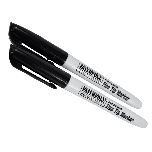 1 x Pack of 2 Faithfull Fibre Tip Marker Pens Black