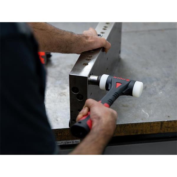 The Wiha FibreBuzz® Soft-Faced Hammer for the controlled positioning and joining of work pieces. The soft-faced hammer dead-blow allows the user to deliver measured positioning blows, protecting delicate surfaces and edges through its high-impact effect.