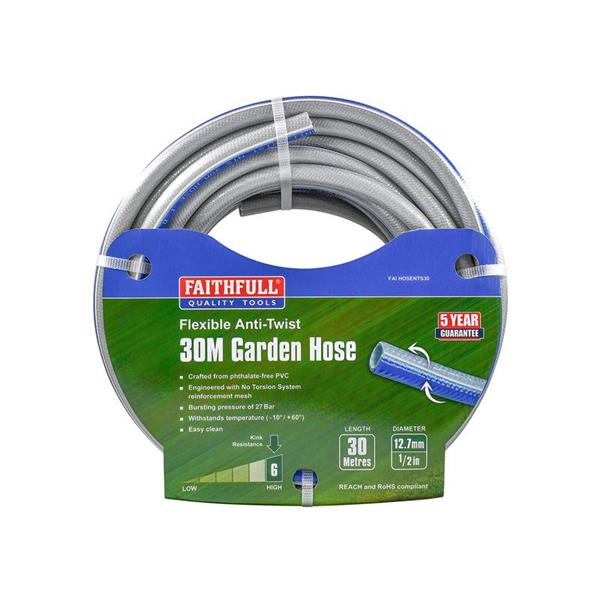 1 x Faithfull Flexible Anti-Twist Hose NTS 30m 12.5mm (1/2in) Diameter