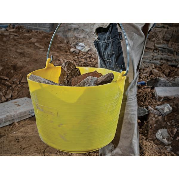 The Gorilla Tub Bucket is strong yet flexible bucket in an easy to find Hi-Viz yellow colour. It can easily be lifted by the thick steel handle with a comfort plastic grip. With reinforced ribbing for extra strength and it is frost and UV ray resistant.