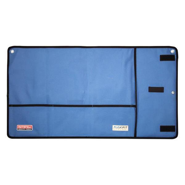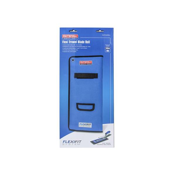 The Faithfull Flexi Trowel Range Tool Roll is designed to protect your Faithfull Flexi Trowels whilst moving between jobs. This convenient roll can fit three Flexi Fit Blades (up to 400mm/16in). It can be rolled up to fit inside a bucket and features two convenient corner eyelets so it can be hung, for easy access to your kit.