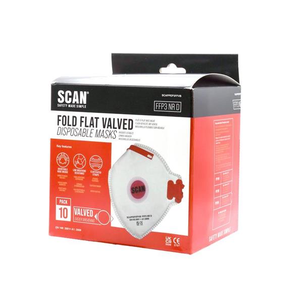 Scan Fold Flat Disposable Valved Disposable Mask Ffp3 Protection (Pack 10)