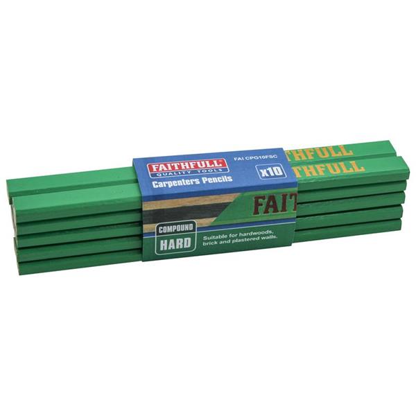 The Faithfull Green Carpenter's Pencils have been designed for general carpentry use and feature a hard graphite compound. They can be used to mark almost any material, except for some metals and polished/glazed surfaces, and leave a visible line regardless of the material's grain.