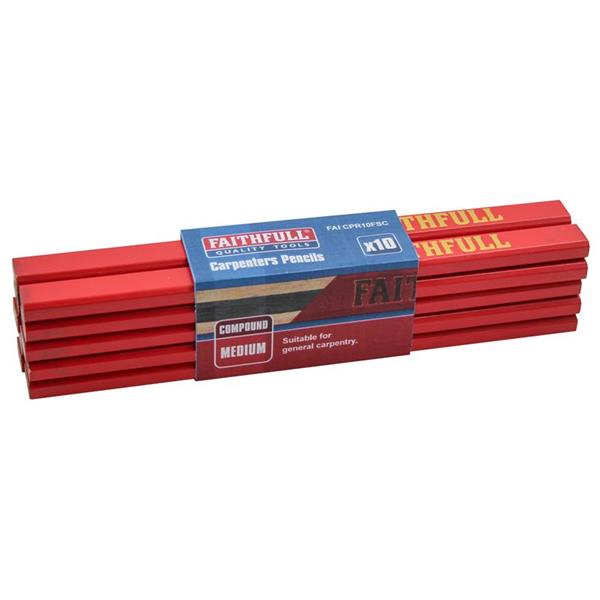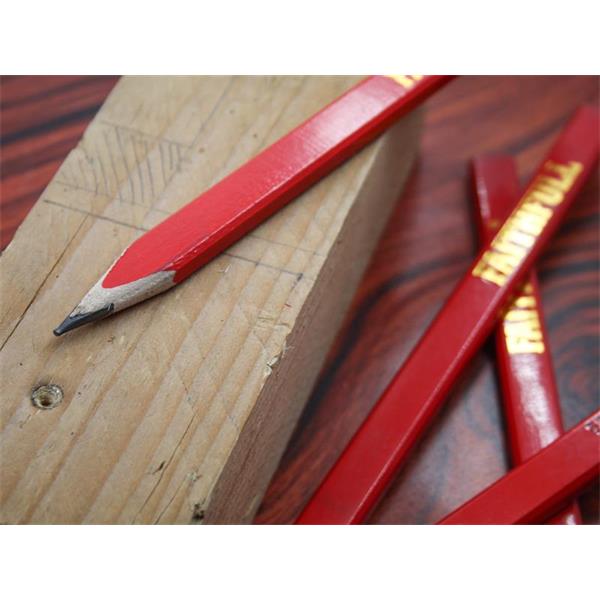The Faithfull Red Carpenter's Pencils have been designed for general carpentry use and feature a medium hard graphite compound. They can be used to mark almost any material, except for some metals and polished/glazed surfaces, and leave a visible line regardless of the material's grain.