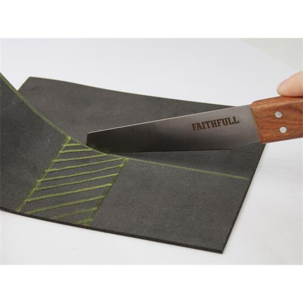 Faithfull FSC Beech Wood Shoe Knife. Generally used for cutting leather but can be used for many other tasks. The flexible stainless steel blade is riveted to a hardwood handle. FSC-certified wood is used in the manufacture of this product. Wood products with FSC certification undergo a rigorous set of environmental, social, and economic requirements in order to be considered sustainable and responsibly sourced.