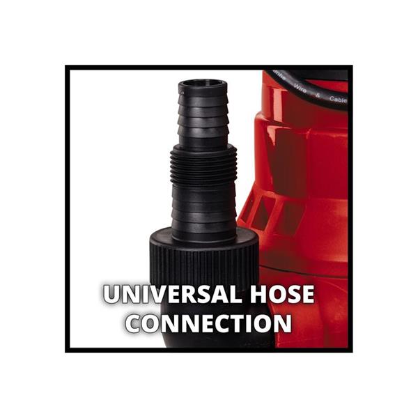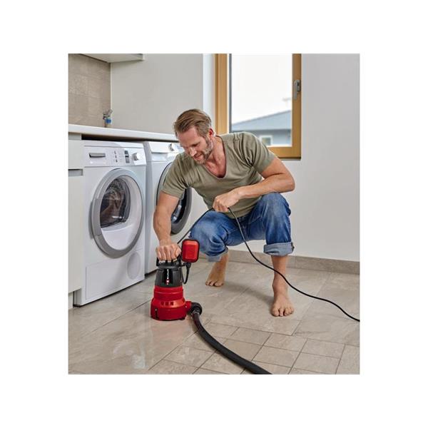 Einhell GC-DP 7035 LL 2-in-1 Combi Pump, clear water and waste water with one device. When pumping clear water it offers flat suction up to 1mm residual water level. The suction level can be adjusted by a simple rotary movement.
