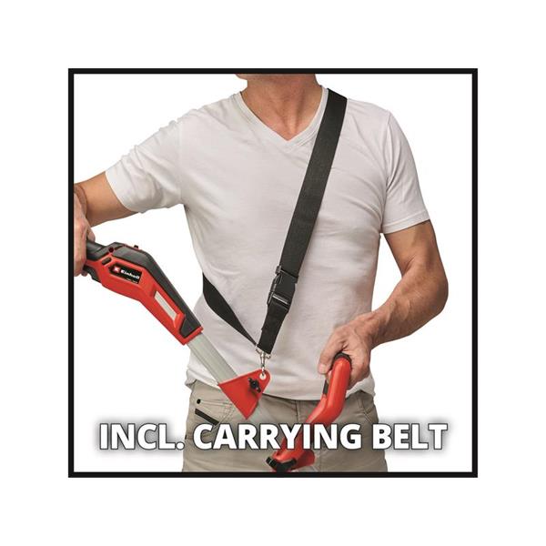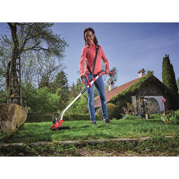With its lightweight aluminium handle pole, auxiliary handle and padded carrying strap, this cordless trimmer offers maximum comfort and stability as you work. The slight curvature at one end of the main pole put the motor head and cutter in the optimal position to achieve perfect cutting results. The main handle is also slightly angled, ensuring the ideal wrist position and preventing fatigue. Other features include a flowerguard, battery protection (sturdy steel frame) and a removable main pole saves space when storing the trimmer.