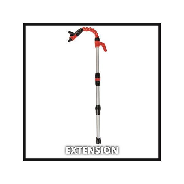 Its powerful motor generates a high delivery pressure of more than 2 bar, which means running a lawn sprinkler or a garden sprayer is no problem at all. The extension tube with its convenient mounting bracket and movable water connection with stop valve for custom positioning of the garden hose, is steplessly telescopic.