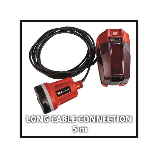 The Einhell GE-PP 18 RB Li - Solo Power X-Change Water Pump is designed for a range of applications. Use as a submersible pump with a long cable connection, e.g. in a tank or well, or with the adjustable connecting pipe, e.g. for a rainwater butt: Water your garden without needing a mains socket, flexible in application and powerful in operation.