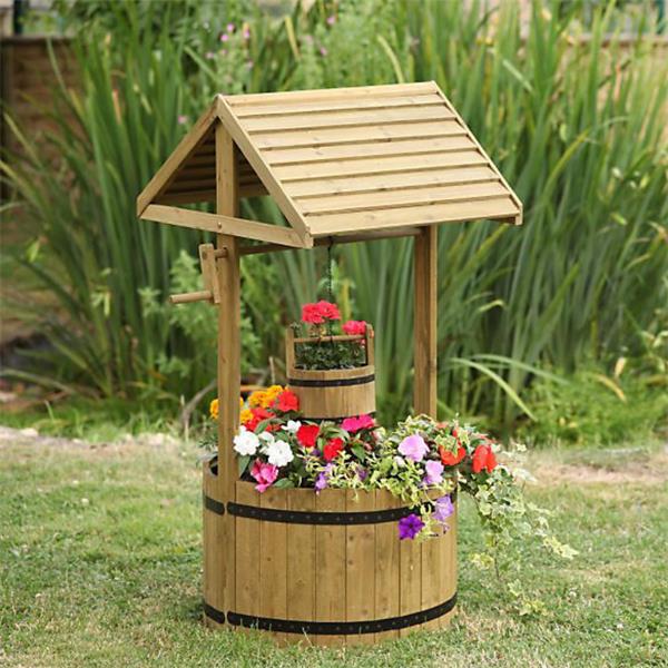 Bring charm and character to your garden with this traditional wooden wishing well planter. Designed to create a striking focal point, it adds a touch of rustic elegance to flower beds, patios, decking, or lawns.