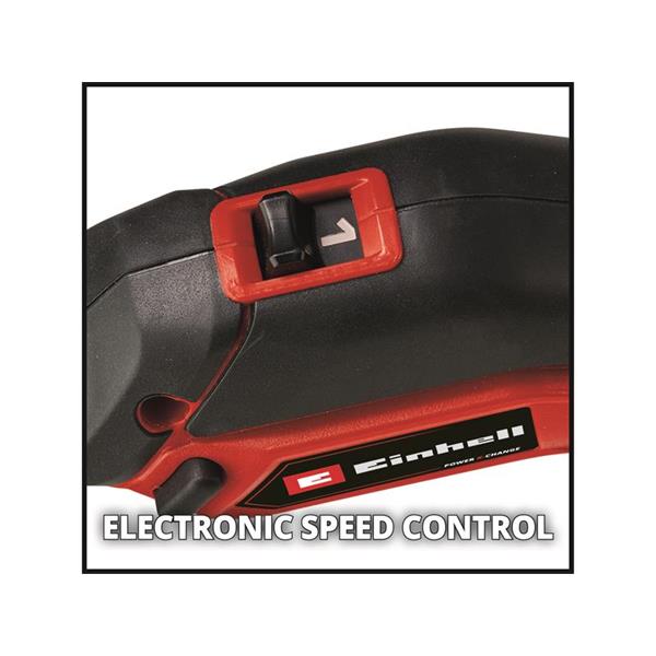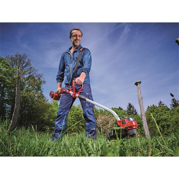 The Einhell GP-CT 36/35 Li BL-Solo Power X-Change Lawn Trimmer is powered by the Einhell PurePOWER brushless motor. This brushless motor offers more power and longer running time than conventional carbon brush motors. After online registration, there is a 10-year warranty on the brushless motor. Whether trimming edge strips or shaping the lawn, the cordless lawn trimmer works quickly and powerfully thanks to 2-stage speed control.